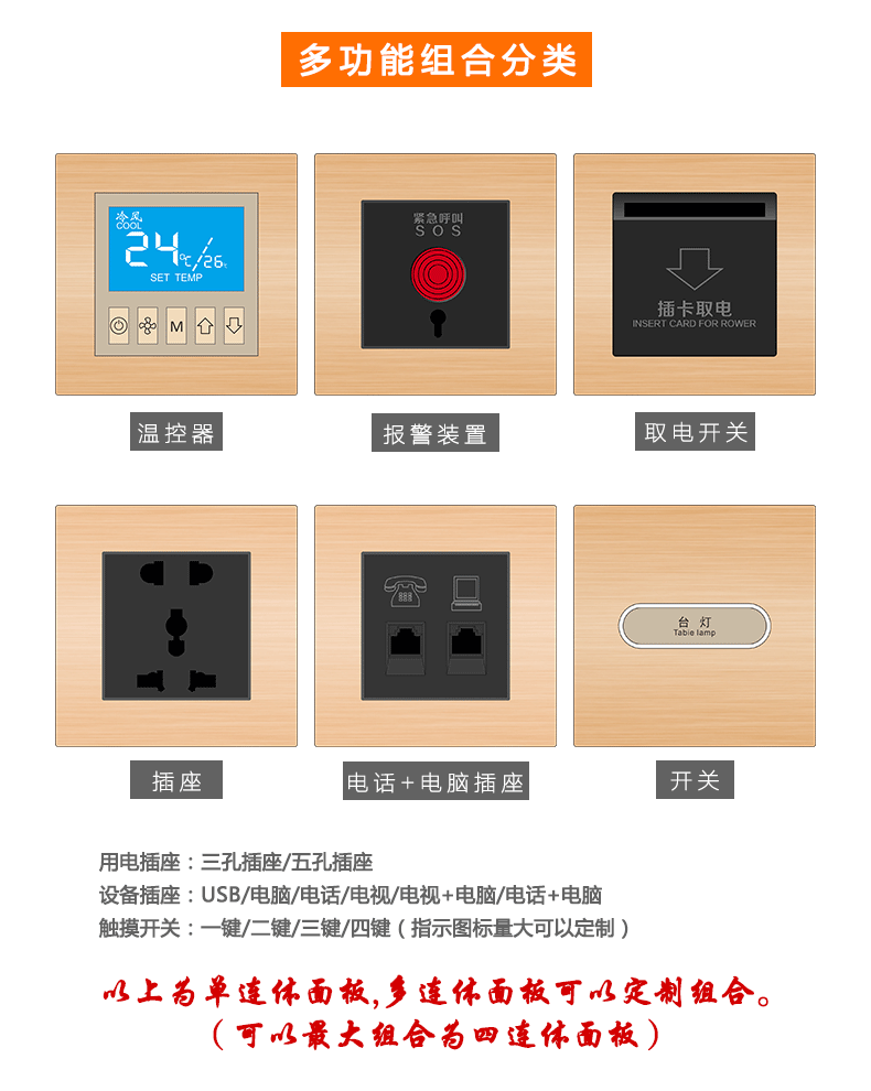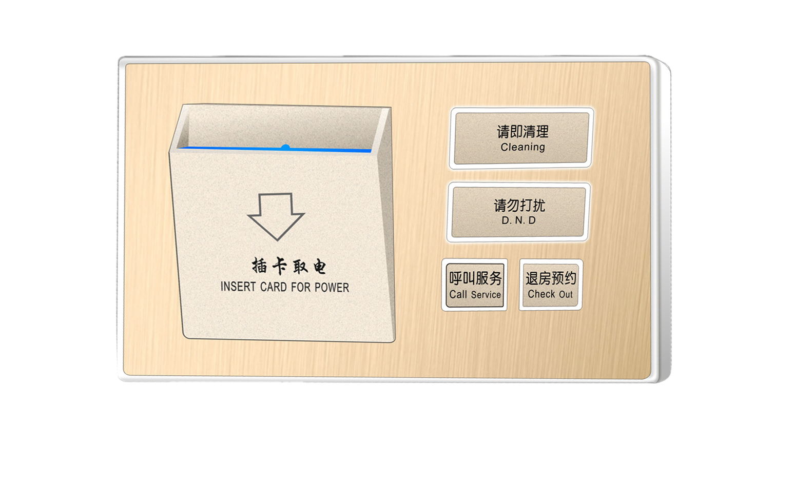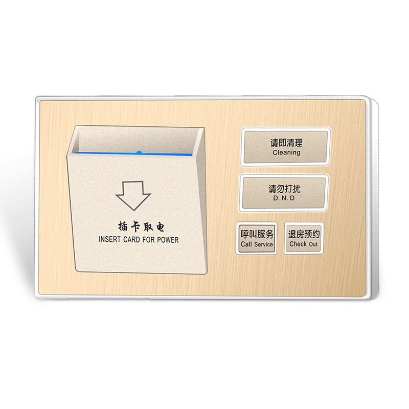 采取使用期限:鍵盤led光通量1萬次操作; 任務功率:實力電都可以做,極低功率想法,待機費電:低于0.2W; 鋁金屬拉絲控制面板,鋅碳素鋼圖片邊框,初級,下墊面。 鼓出來展現性質化旅店標識,尊顯旅店要素; PC防潮絕緣帶素材底盒,適于國際上消防安全要求; 制約86底盒盒保護配置;保護配置快速、簡易; 縮小效率:可與全世界企業客控主機設備配婚。